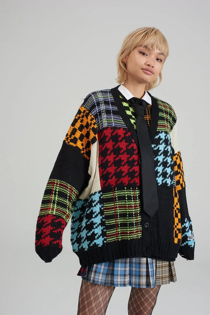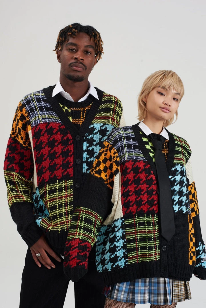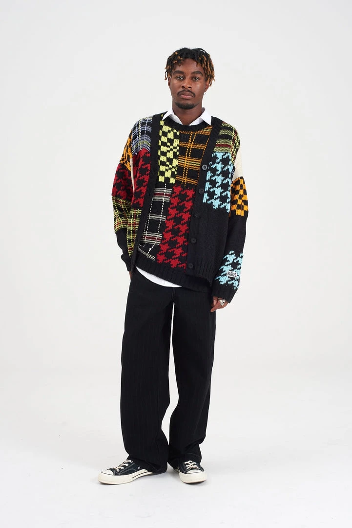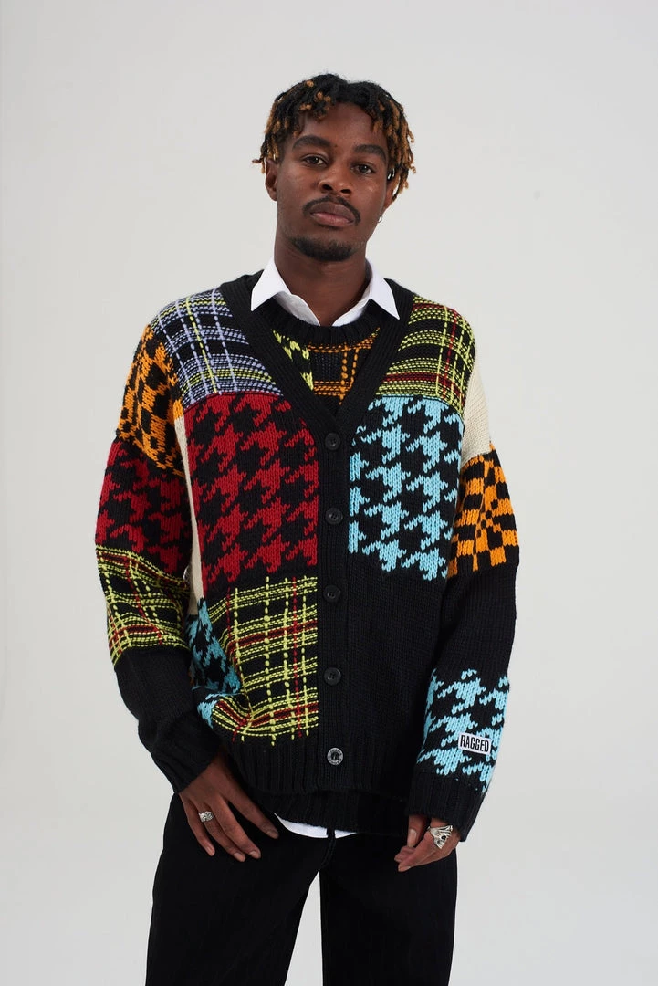 Ragged Jeans unisex mixed pattern knit cardigan.