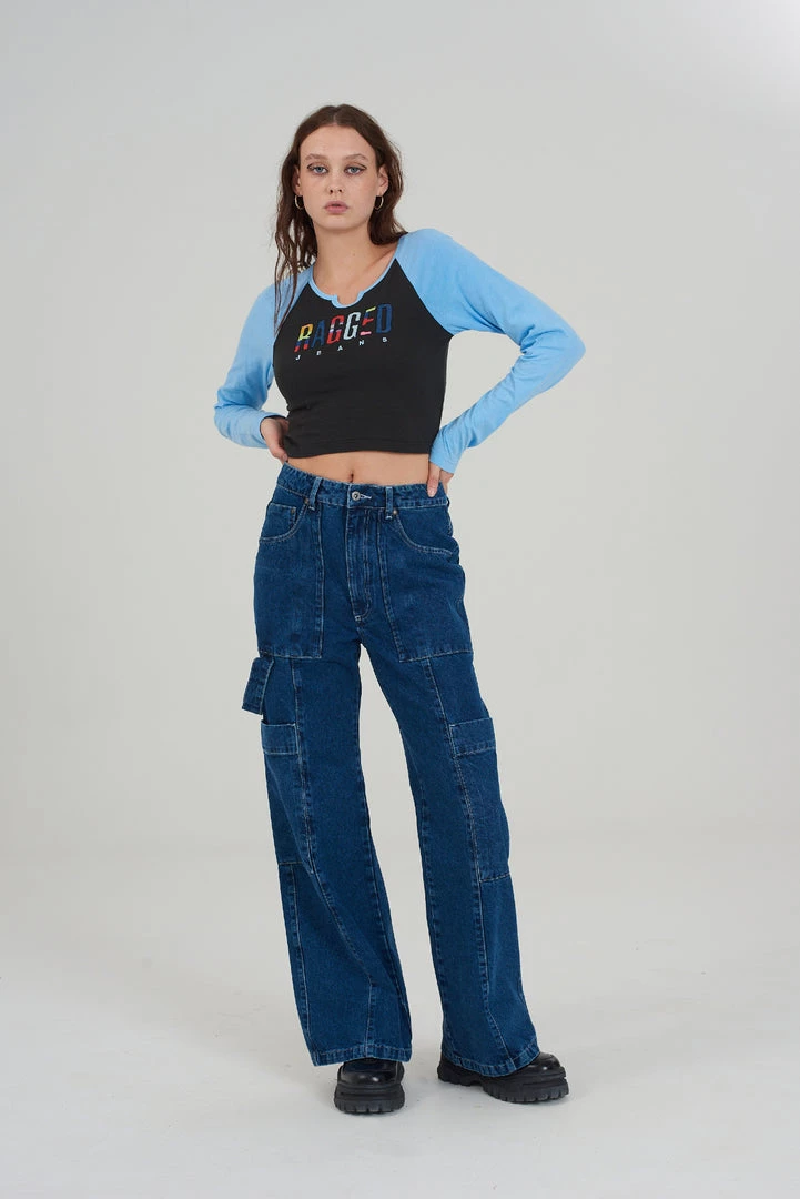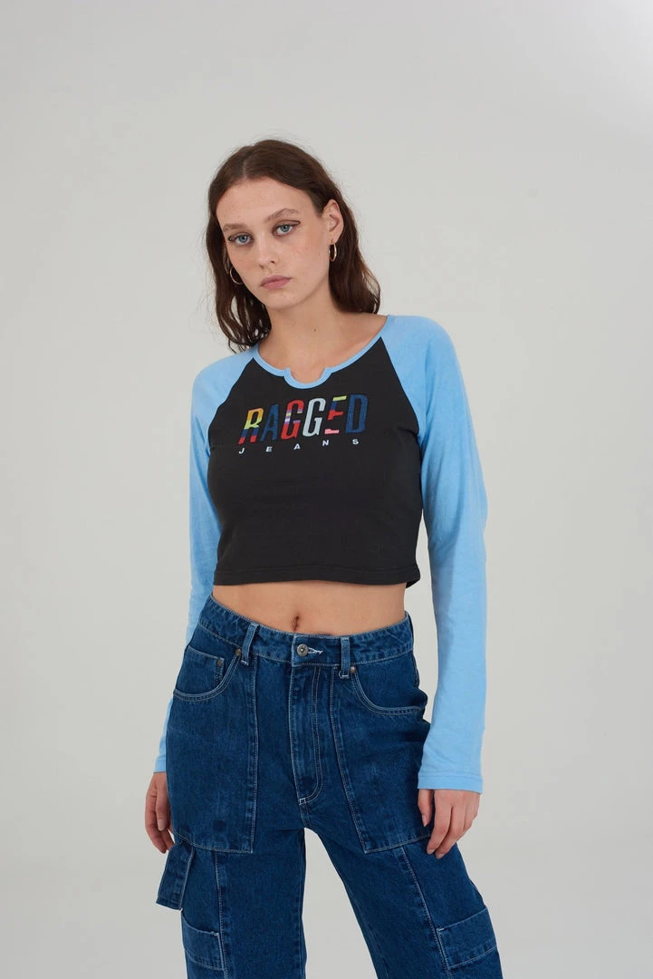 Ragged Jeans black & blue long sleeve ringer tee with appliqué logo.