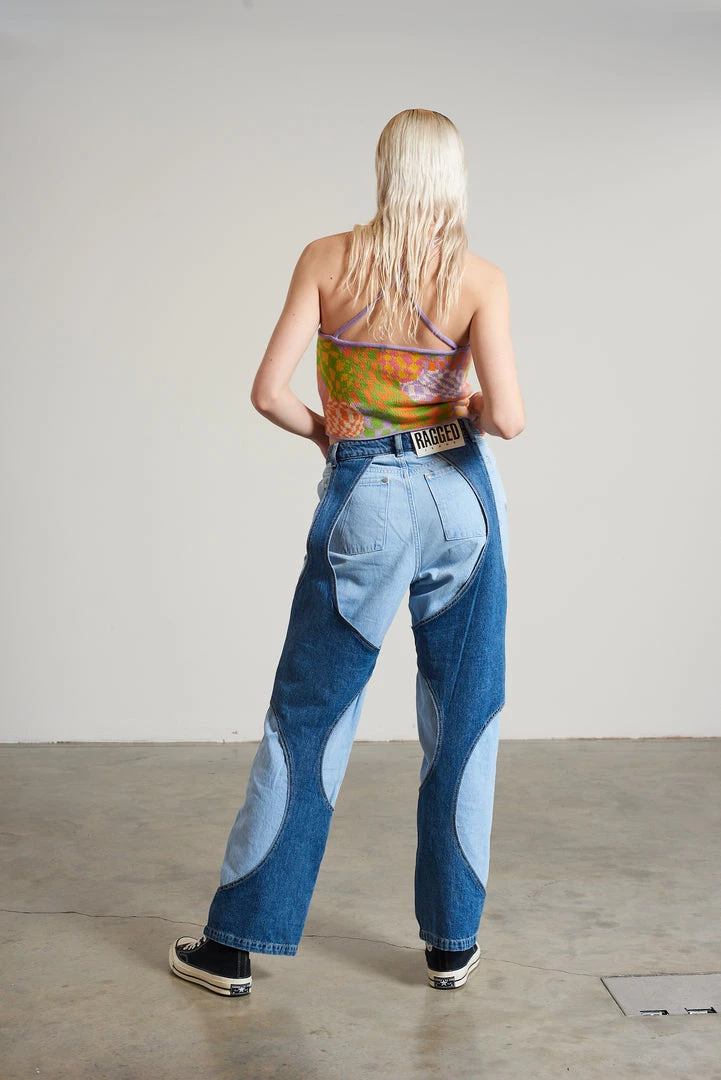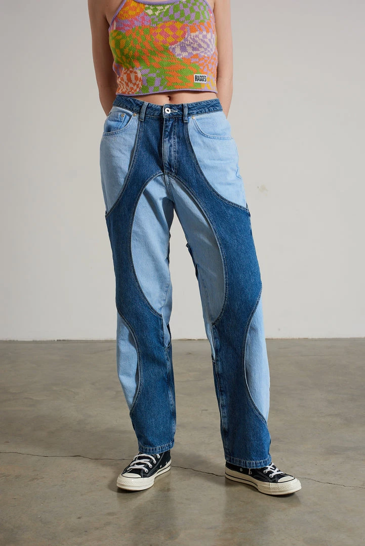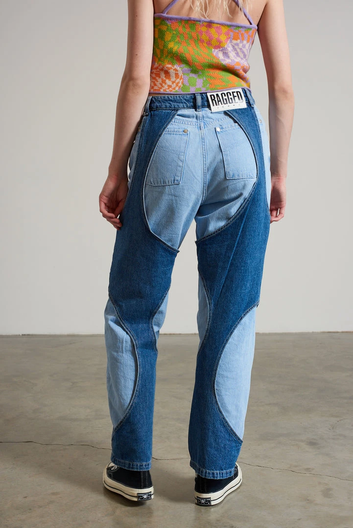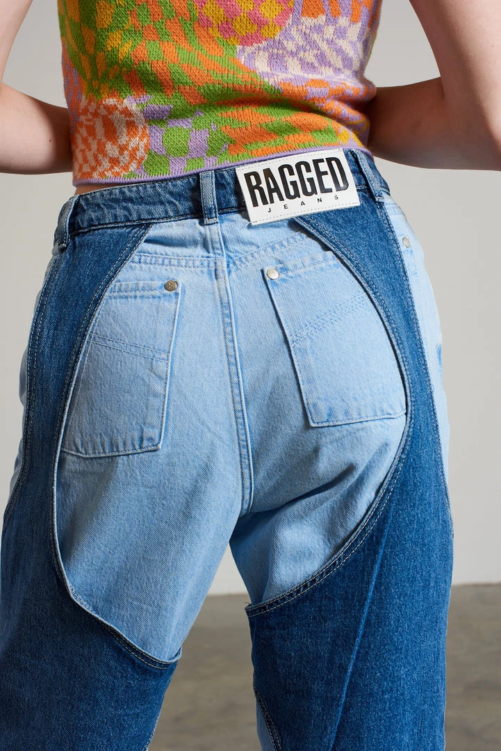 Ragged Jeans blue cut out layered dad jean.