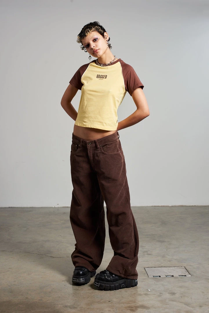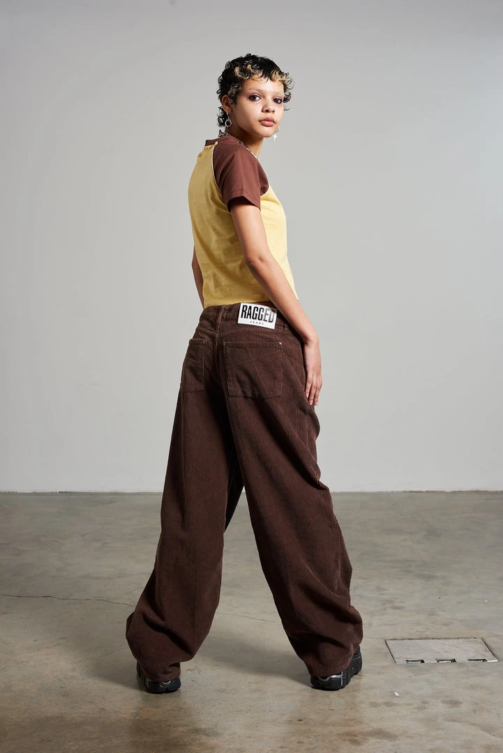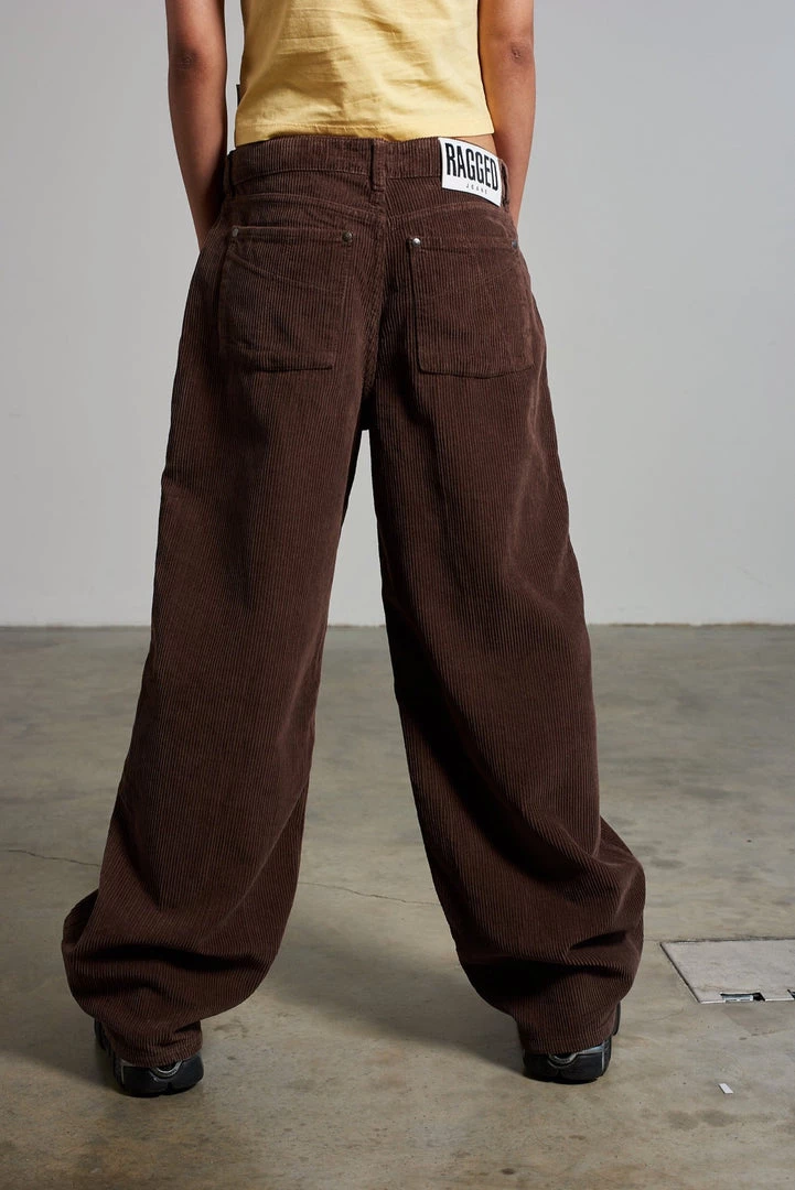 Ragged Jeans brown corduroy ultra baggy low rise jean.