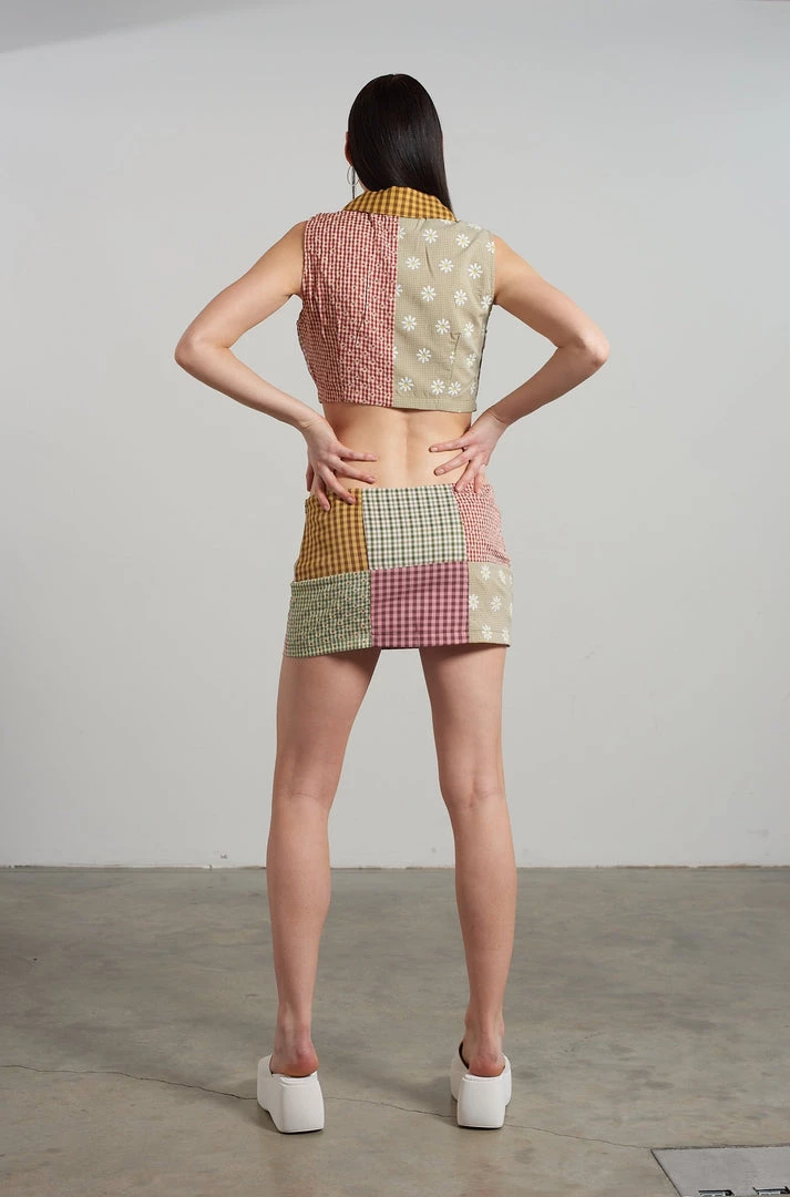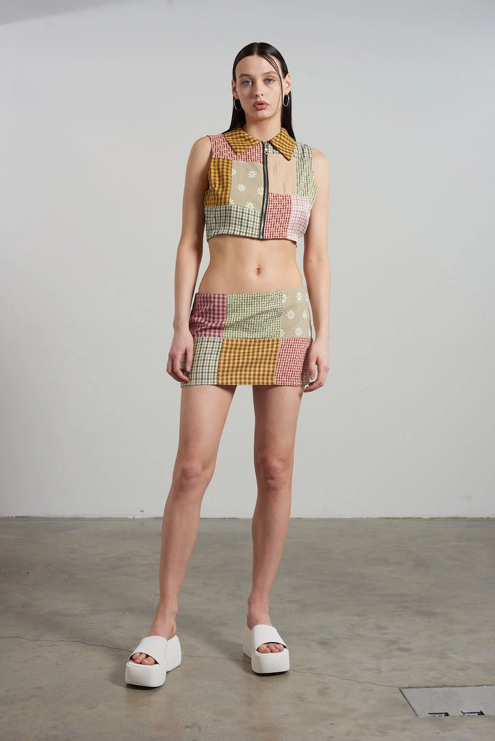 The Ragged Priest multi coloured mixed patchwork super mini skirt.