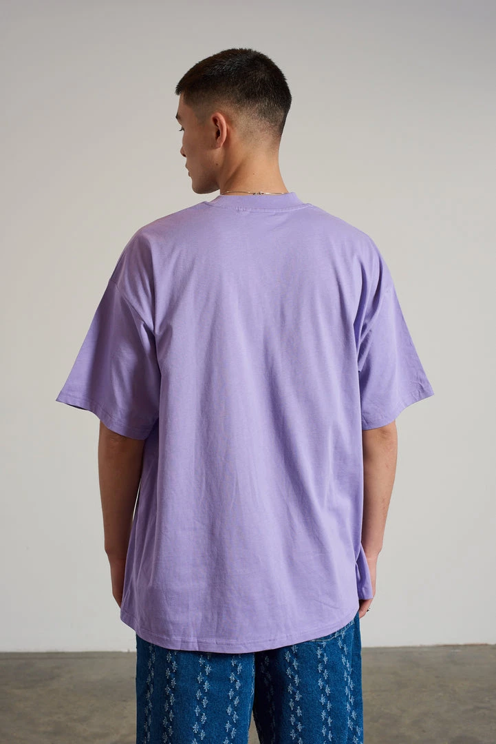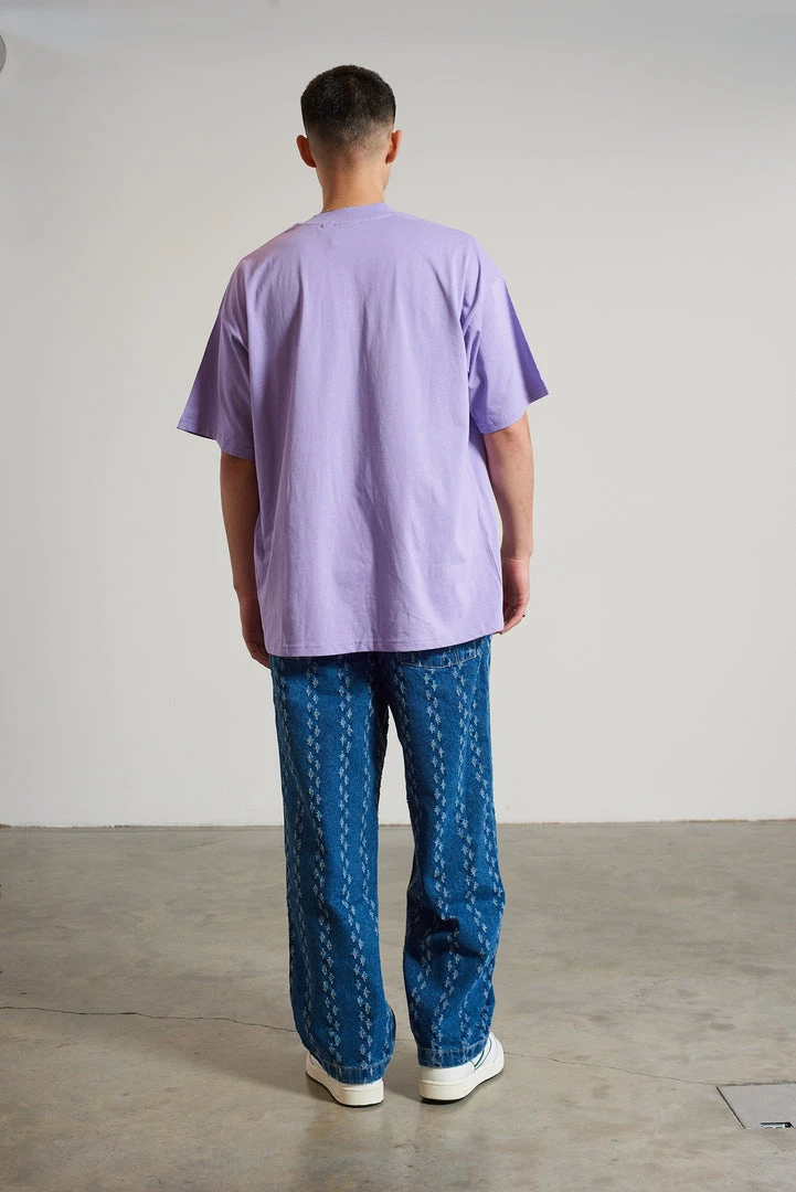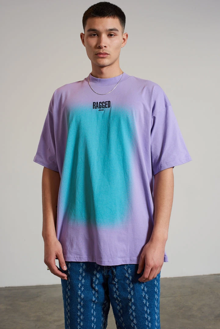 Ragged Jeans mens purple and blue burn out print short sleeve tee with embroidered Ragged logo.