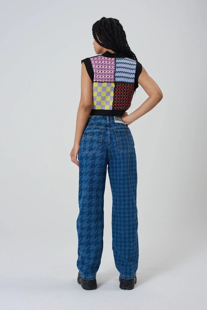 Ragged Jeans houndstooth laser print blue denim dad jean.