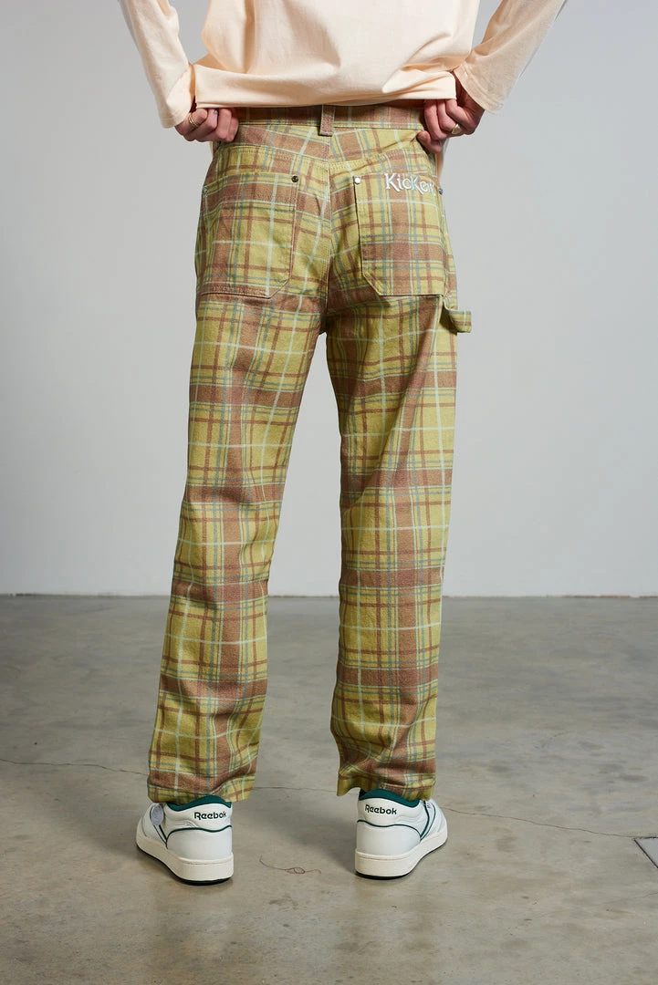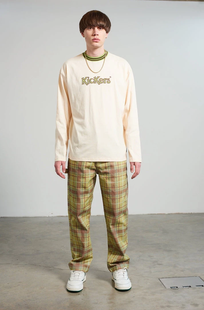 Kickers Classics check print straight leg drill pants with turn up hem.