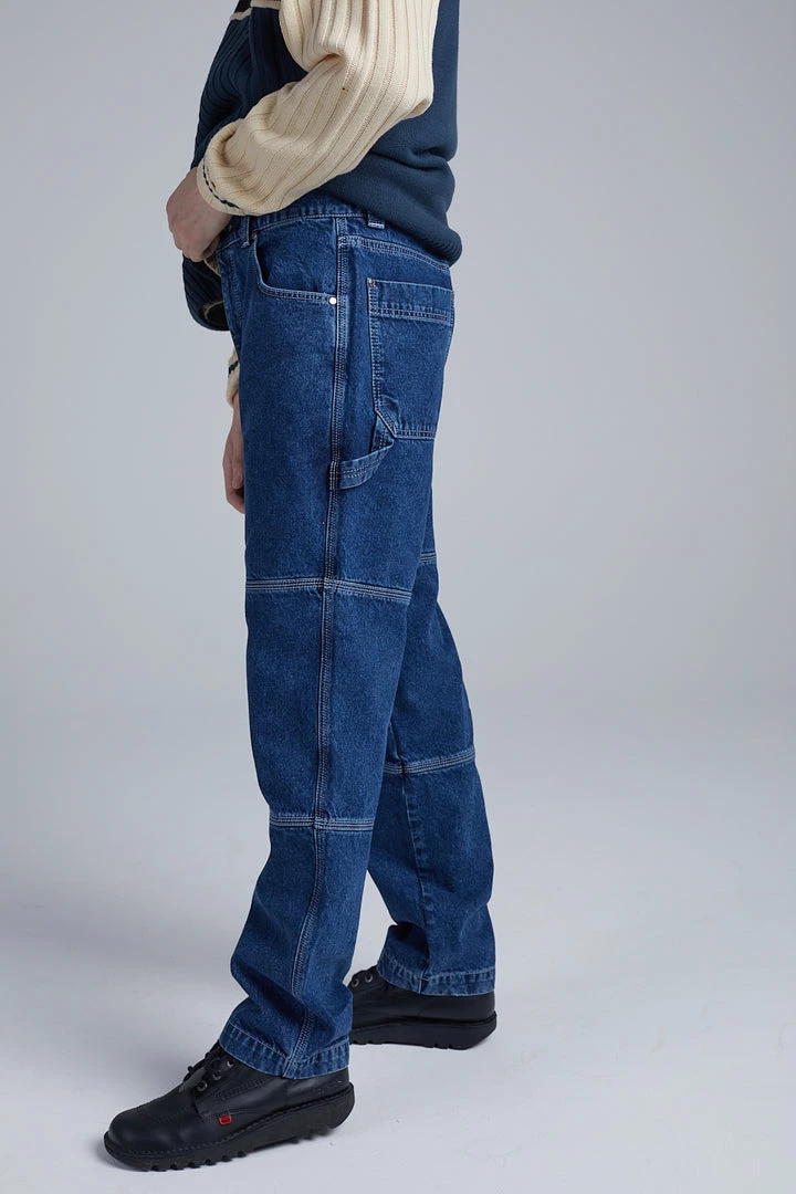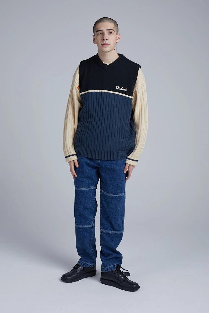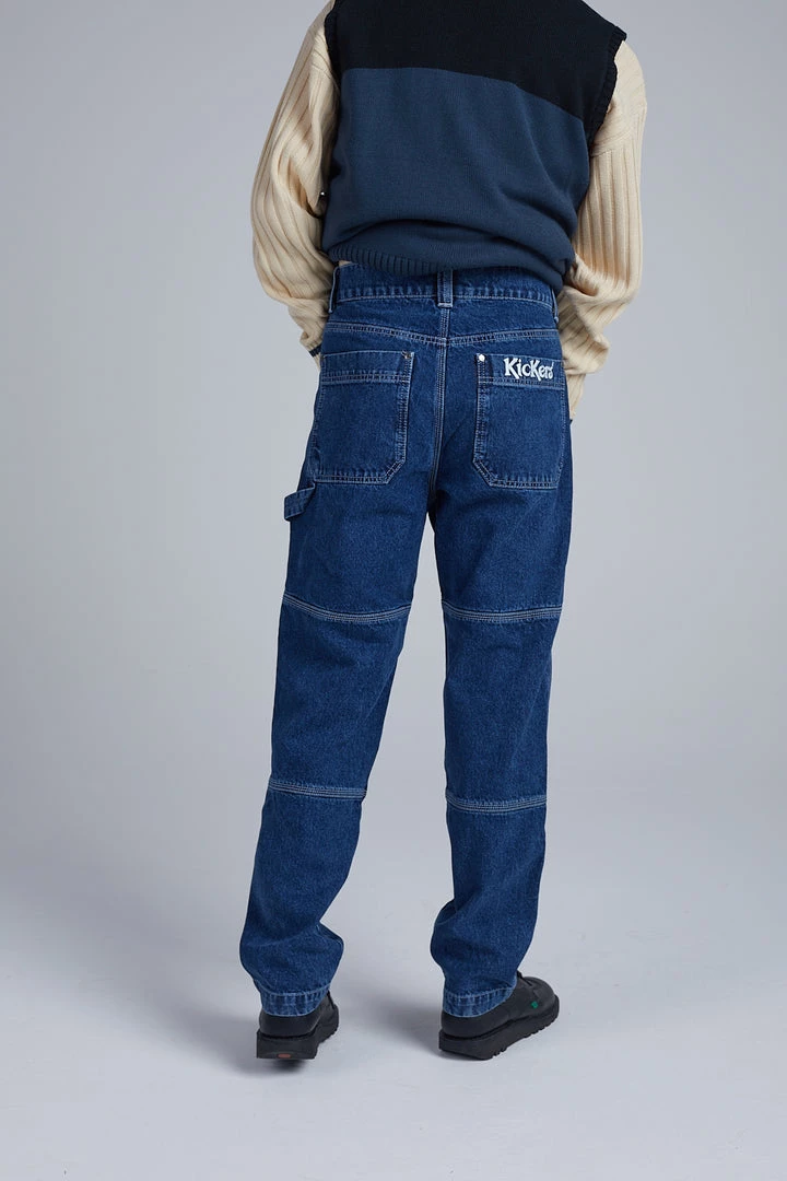 Kickers Classics blue denim panelled pants with white logo.