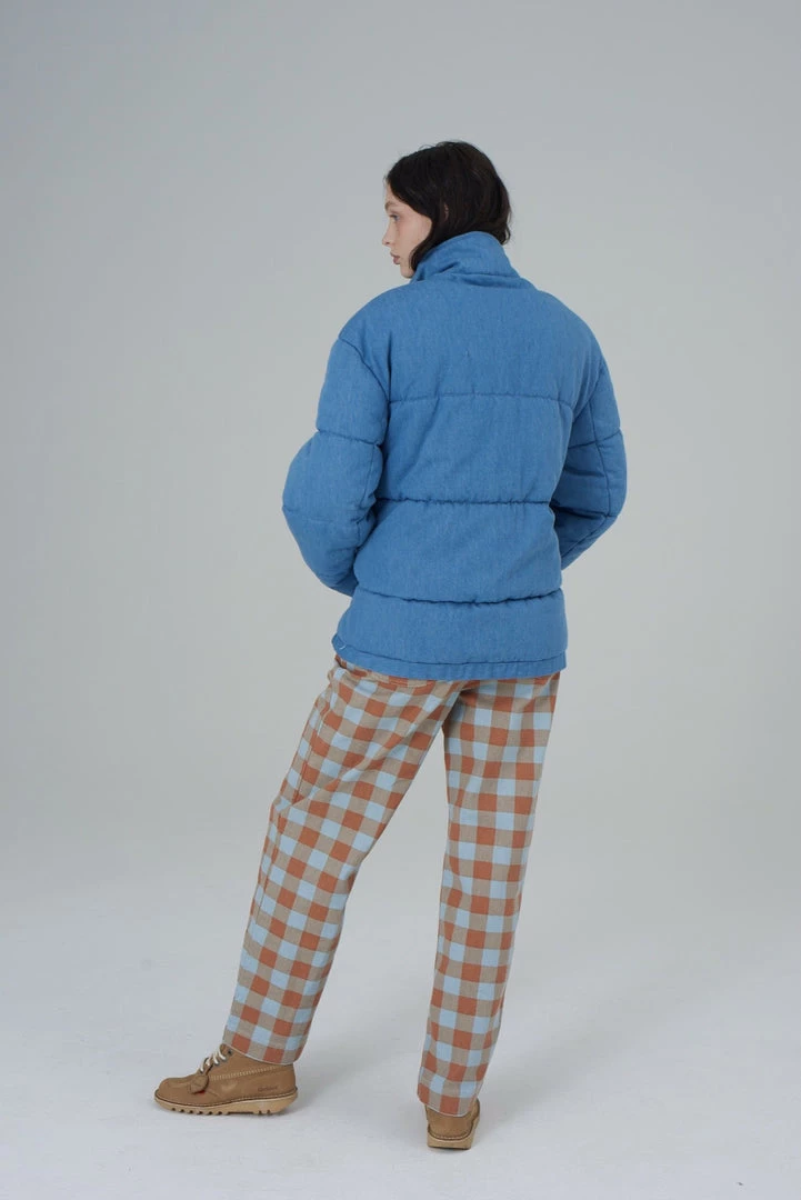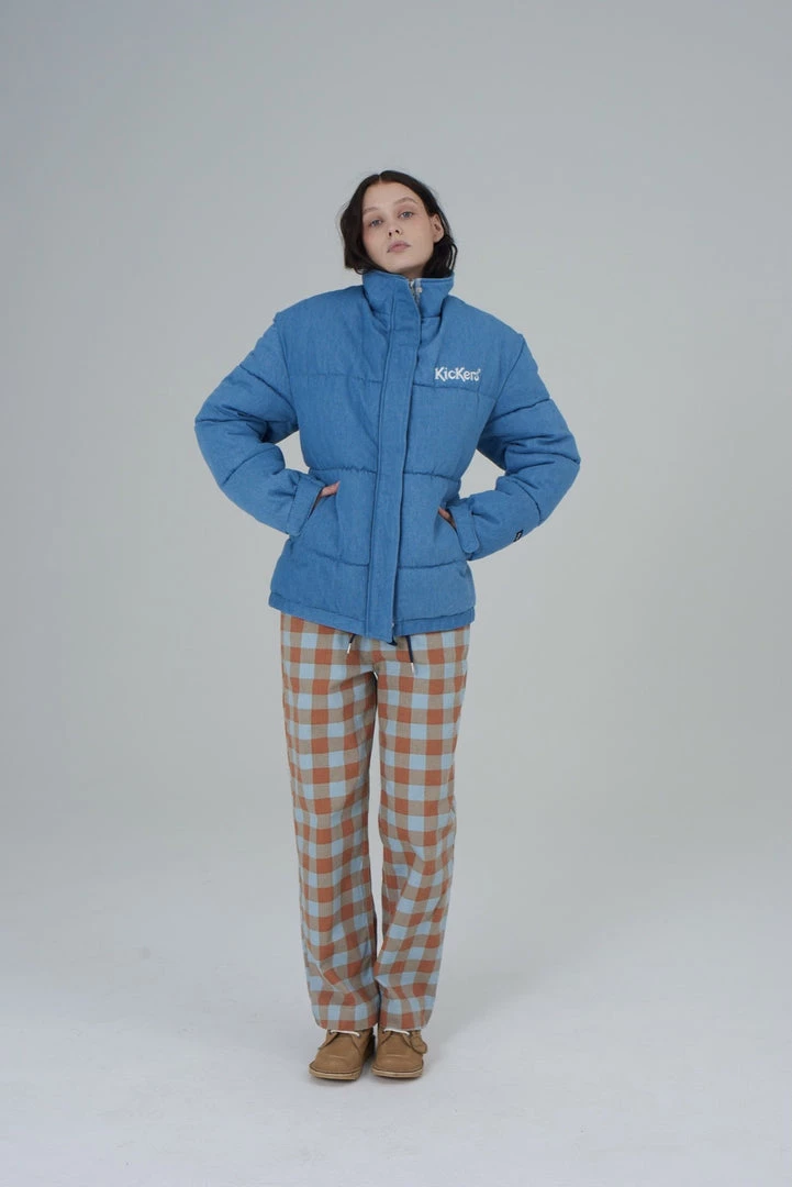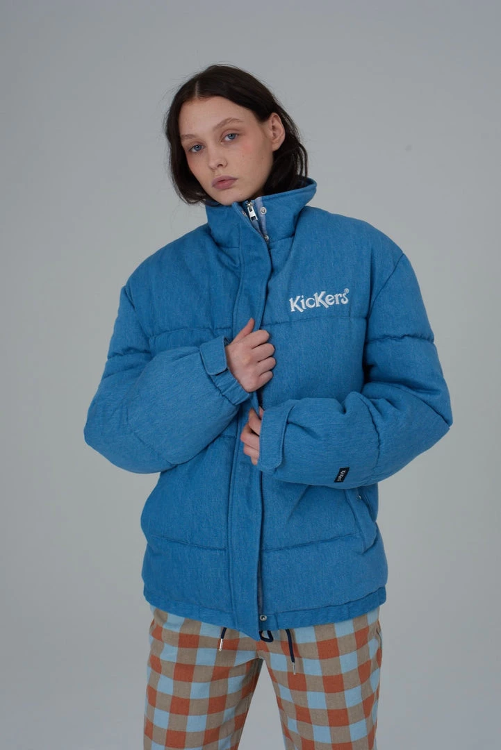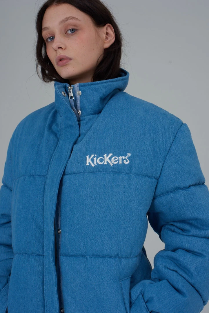 Kickers Classics blue denim puffer coat with embroidered logo.