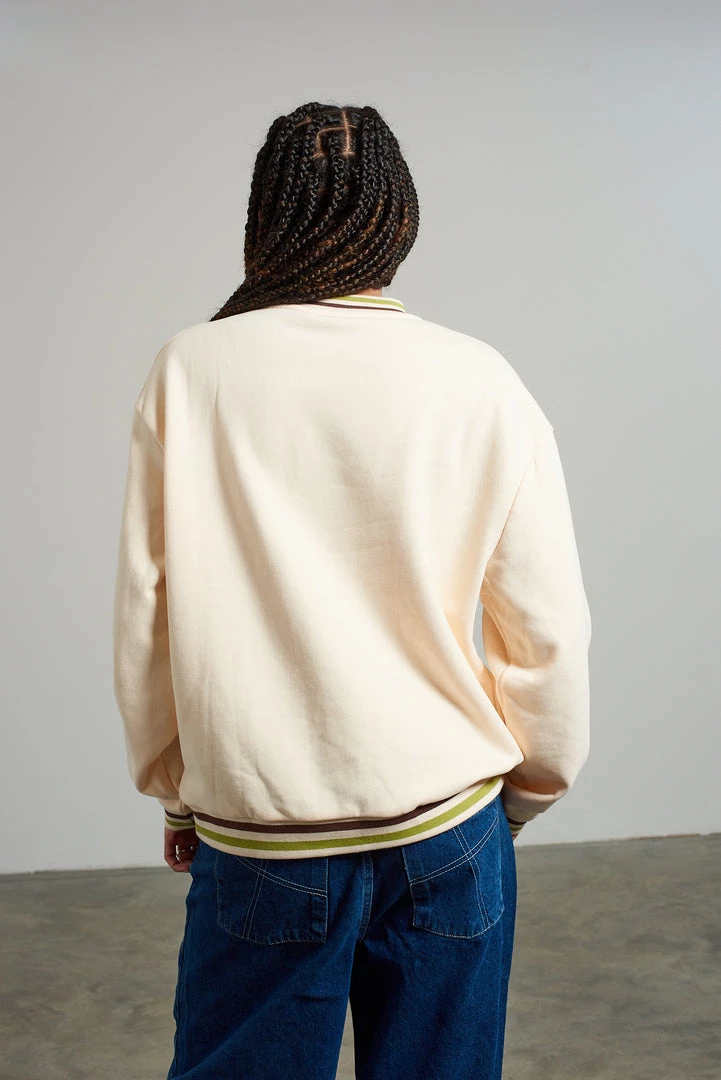 Kickers Classics ecru sweatshirt with central Kickers logo and stripe trims.