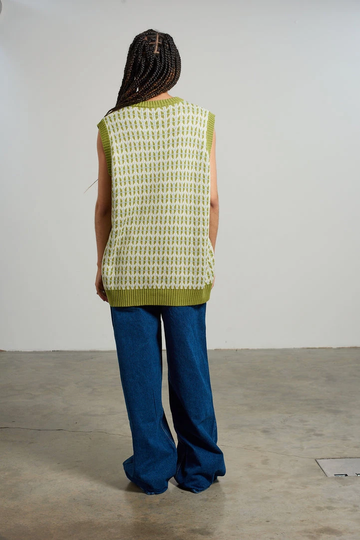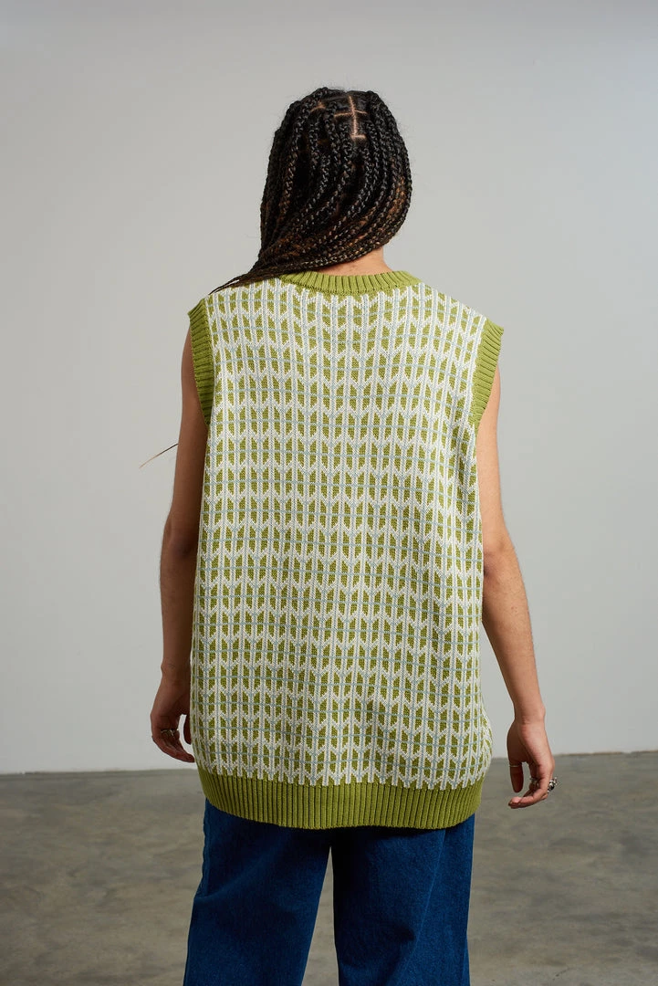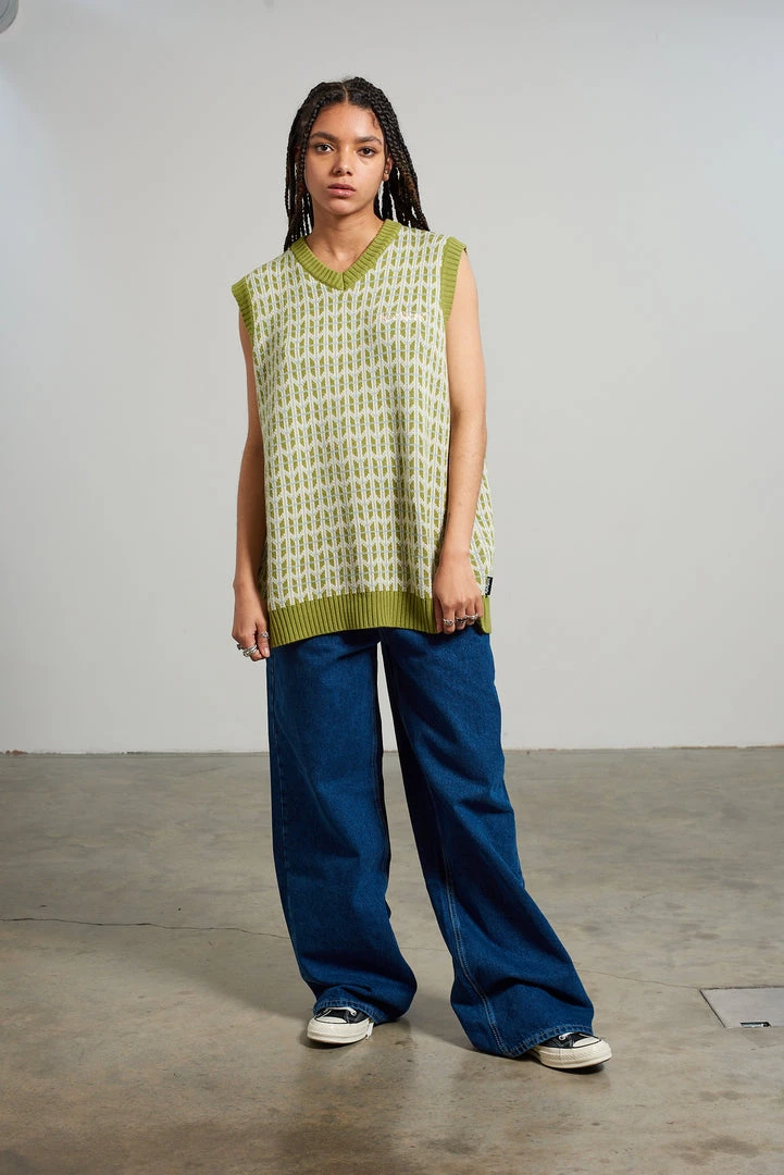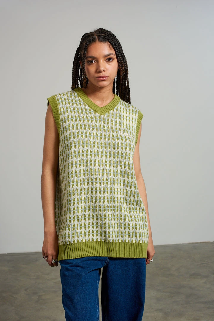 Kickers Classics green retro print knitted vest.