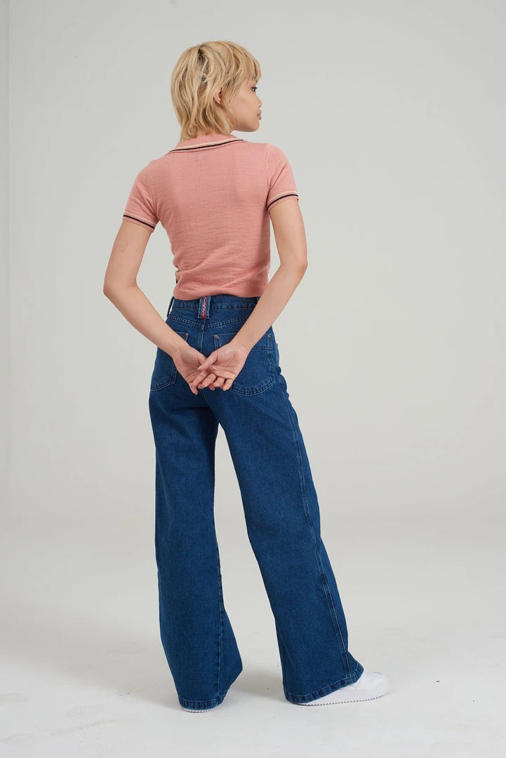 Kickers Classics pink knitted polo top with sports stripe logo.