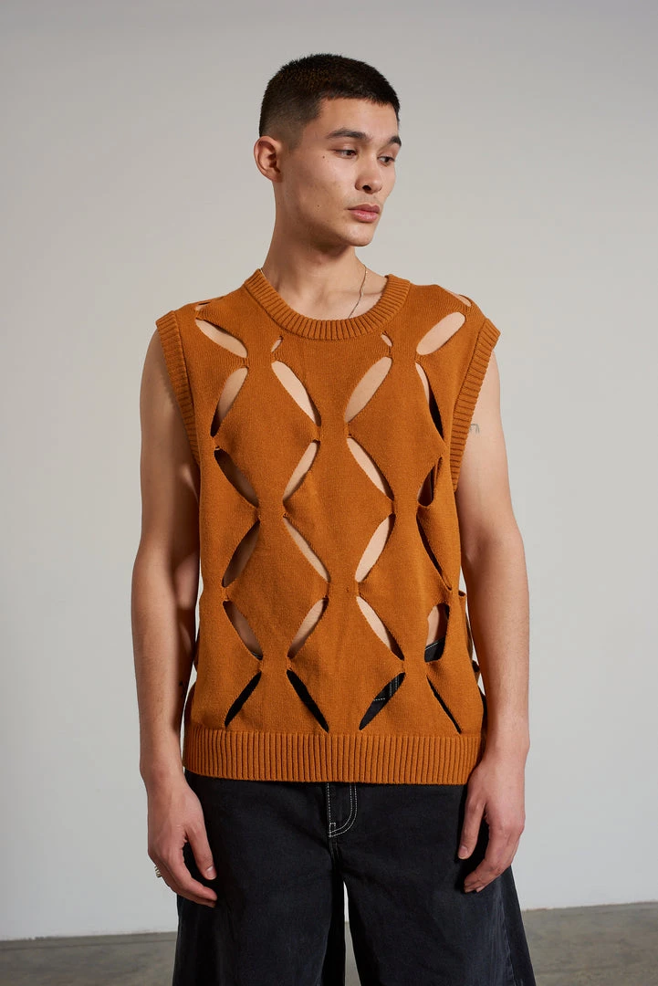 Ragged Jeans mens cut out knit vest.