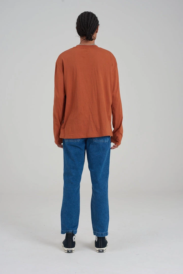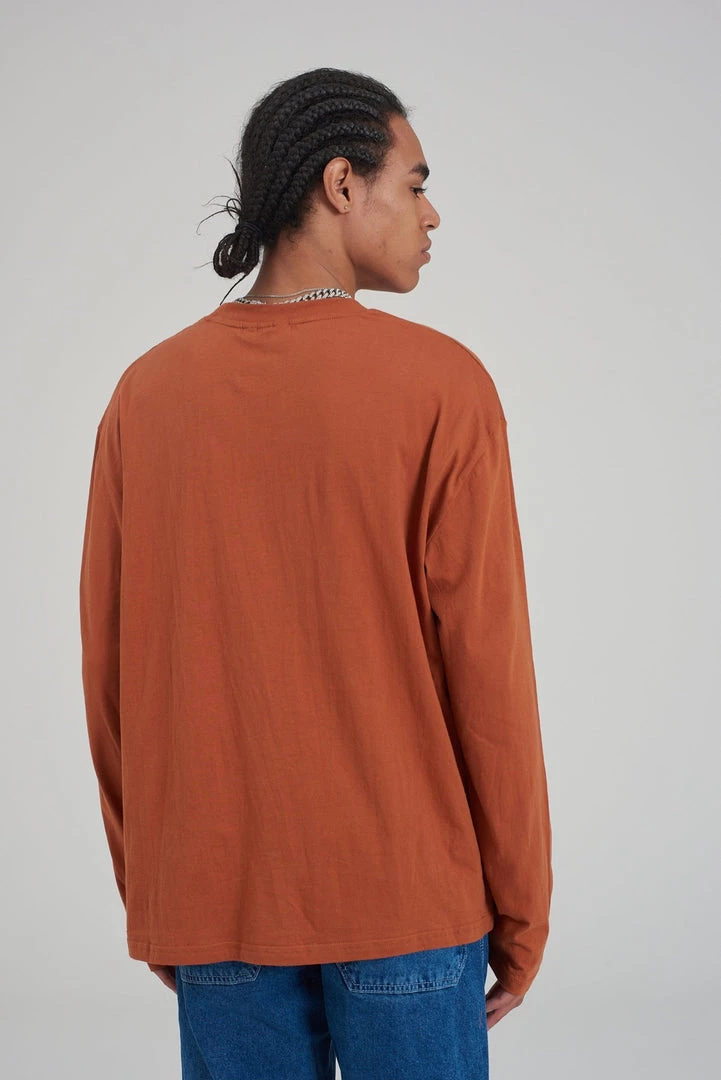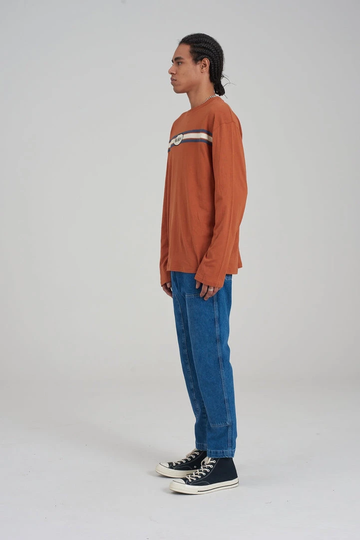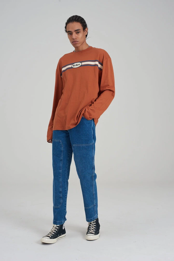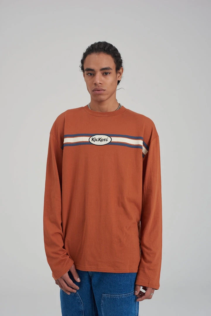 Kickers Classics rust long sleeve tee with chest stripe.