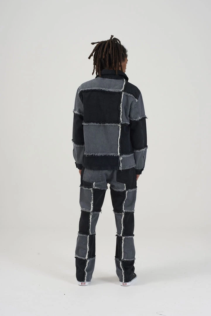 Ragged Jeans mens charcoal patchwork denim jacket.