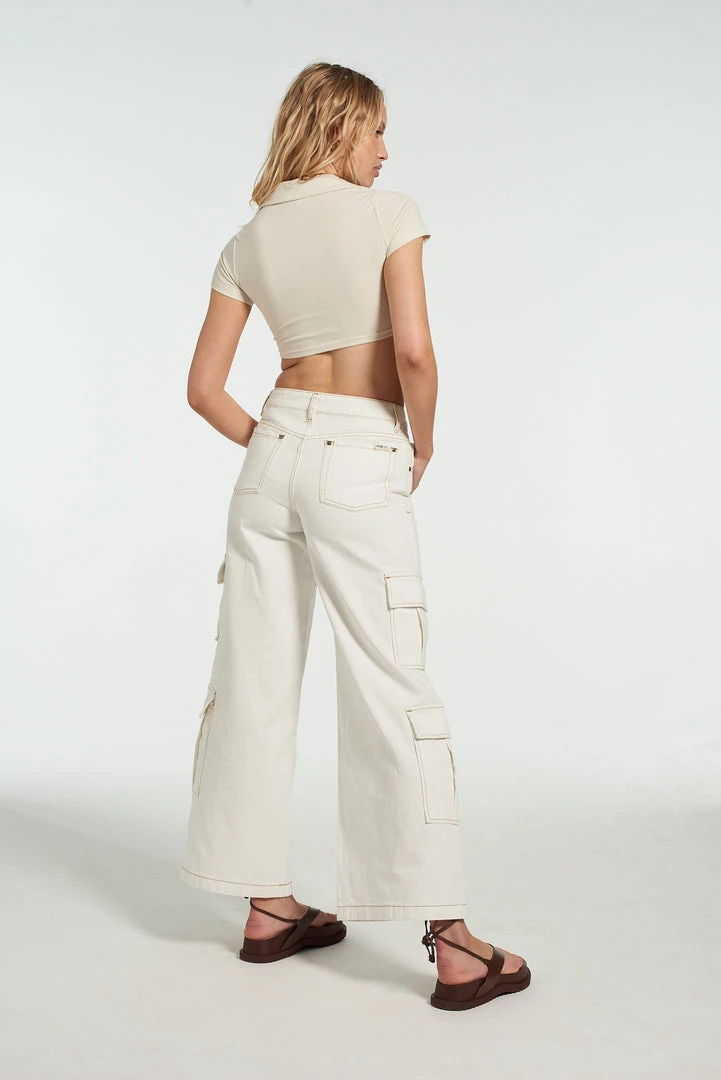 The Milk It South top is our ecru t-shirt style cropped top with lace up central design.