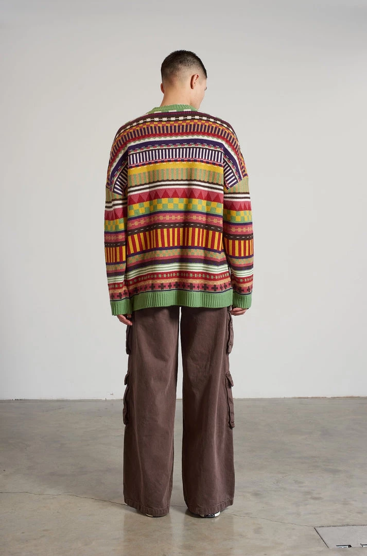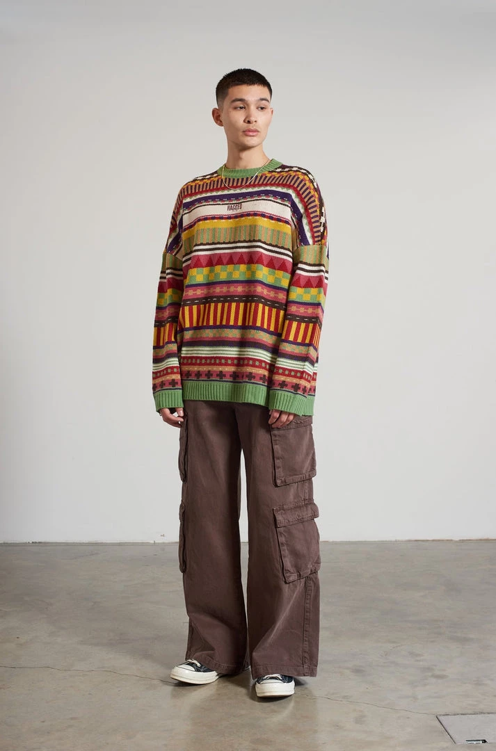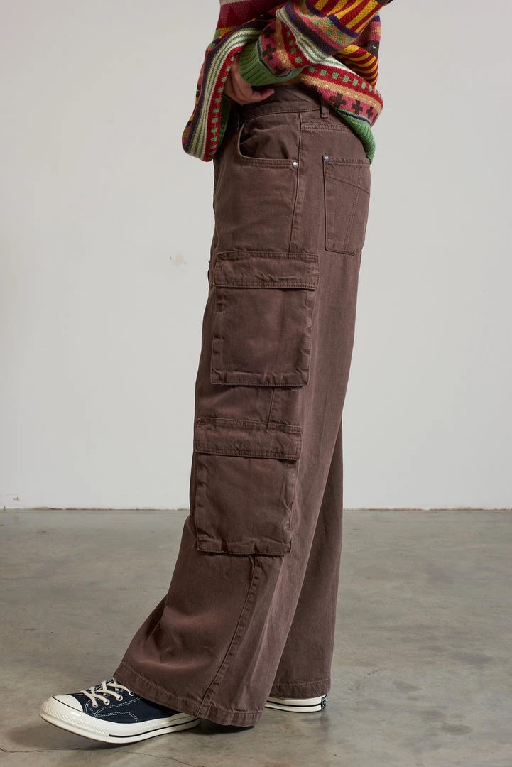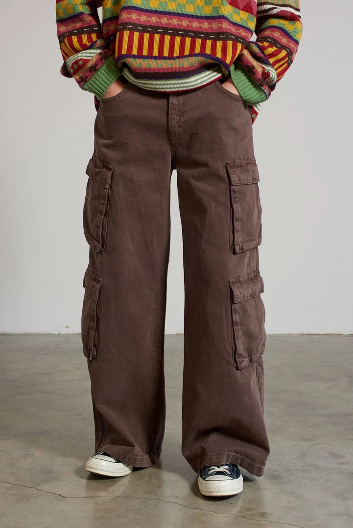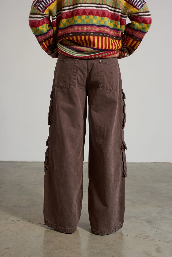 Ragged Jeans mens brown multi pocket wide leg cargo denim jean.