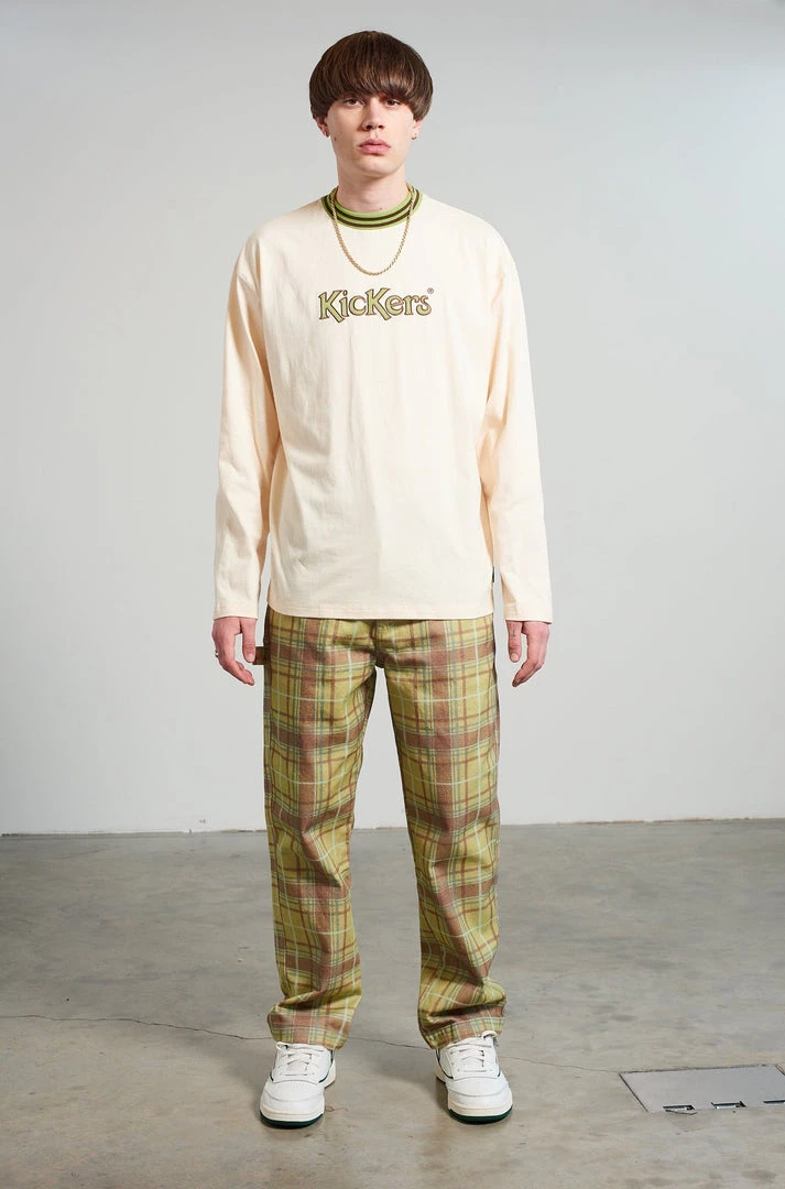 Kickers Classics ecru long sleeve tee with chest logo and stripe trims.