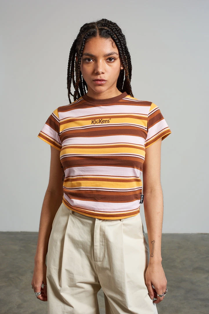 Kickers Classics multi colour stripe short sleeve ringer tee.