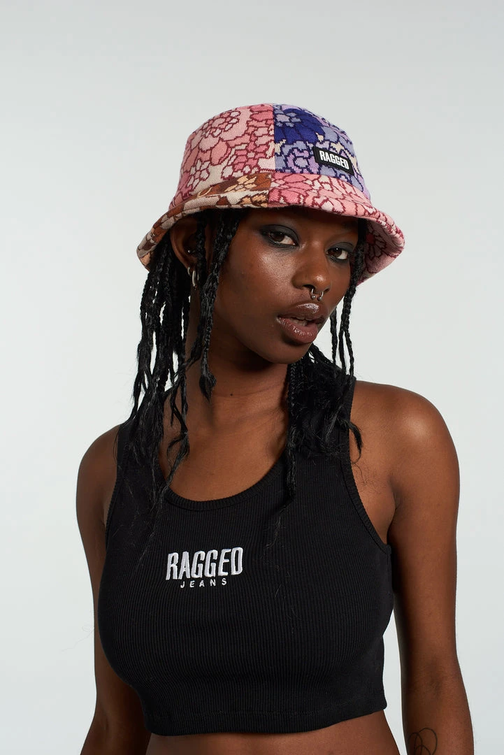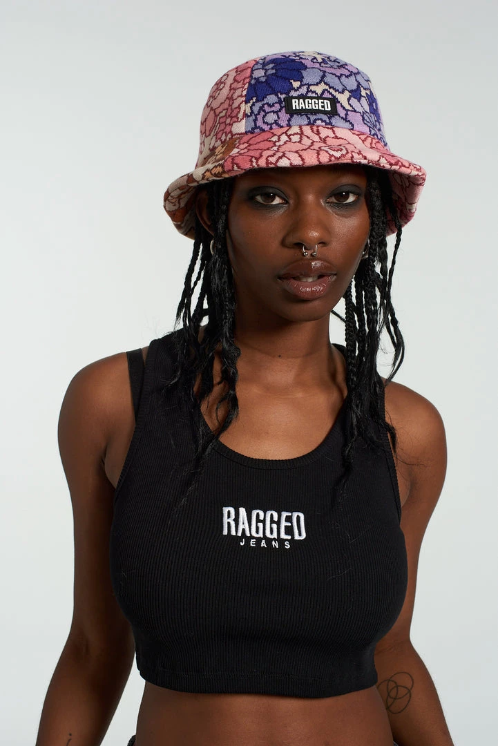 The Ragged Priest knitted floral panel design bucket hat.Â