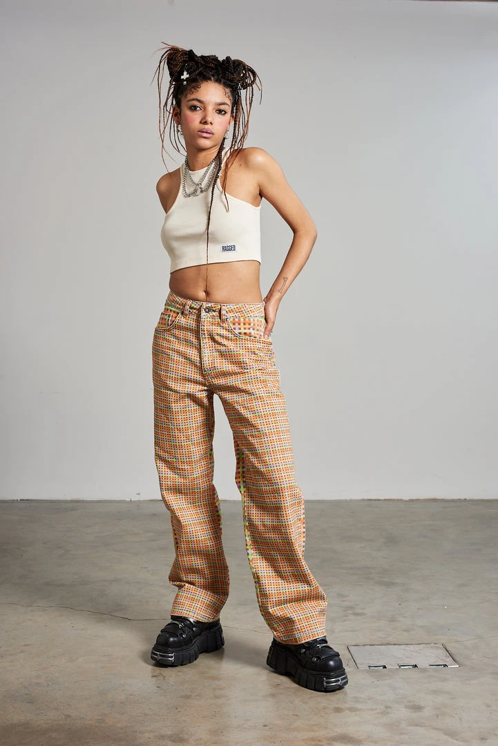 Ragged Jeans multi colour mini check printed denim dad jean.