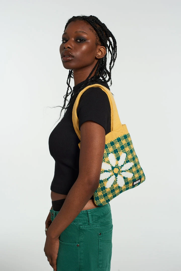 The Ragged Priest knitted gingham design grab bag with centra large daisy design.Â