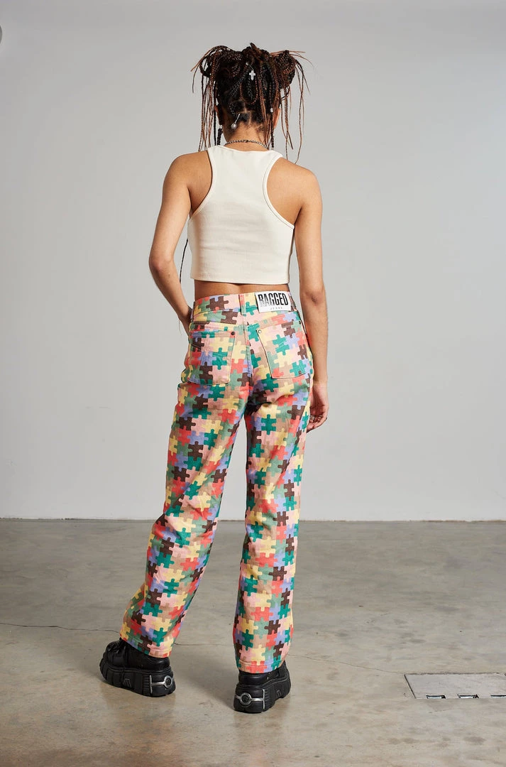 Ragged Jeans multi colour puzzle piece print denim dad jean.