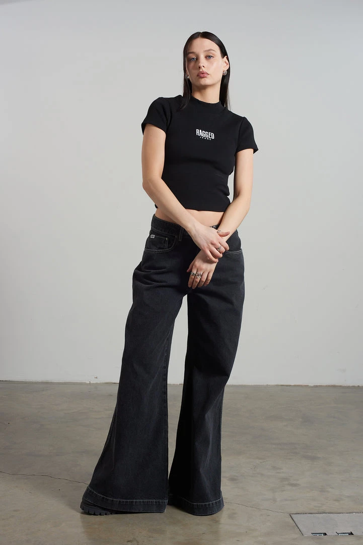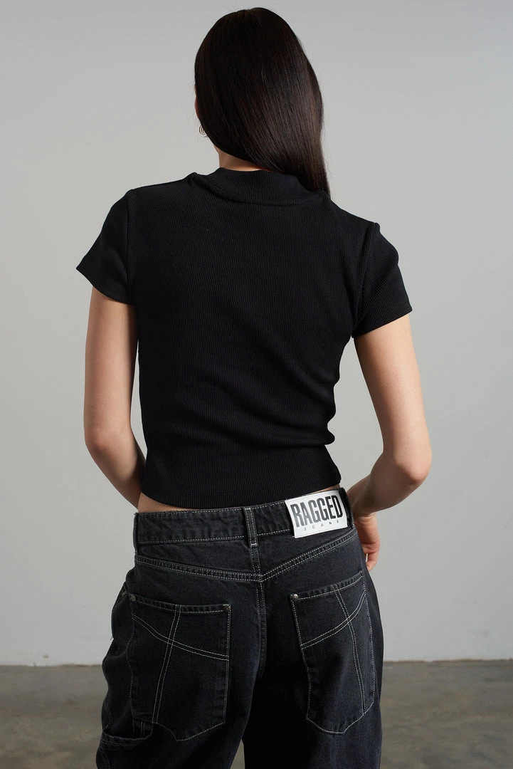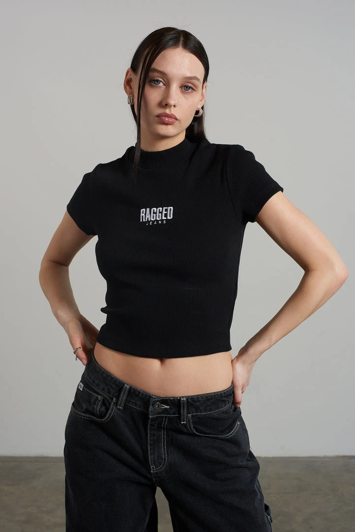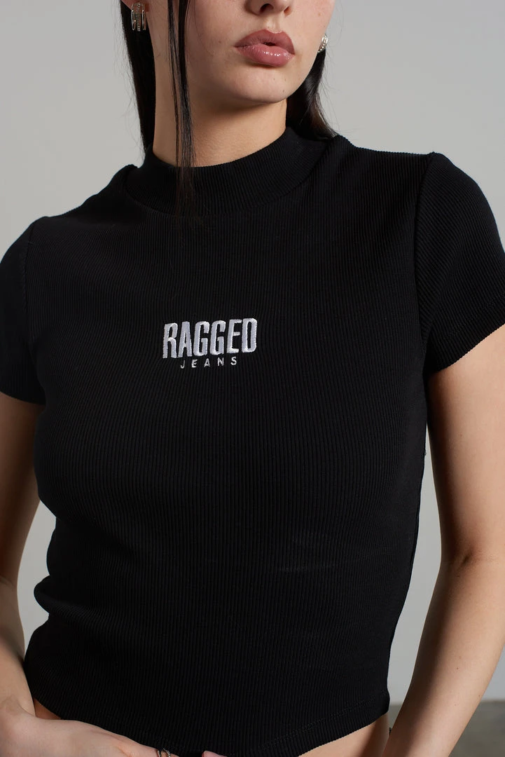 The Ragged Priest Ragged Black Ribbed Short Sleeve Tee