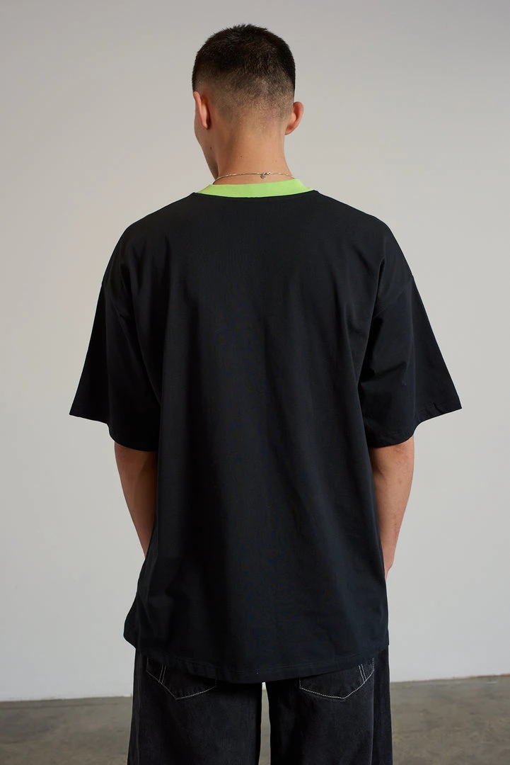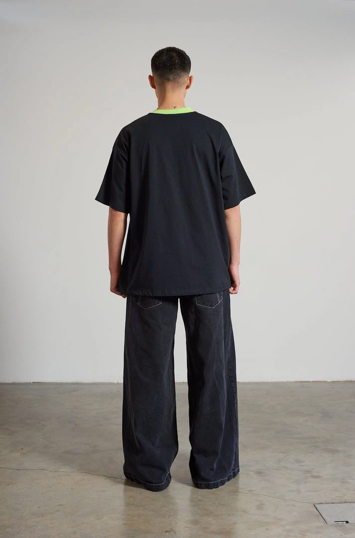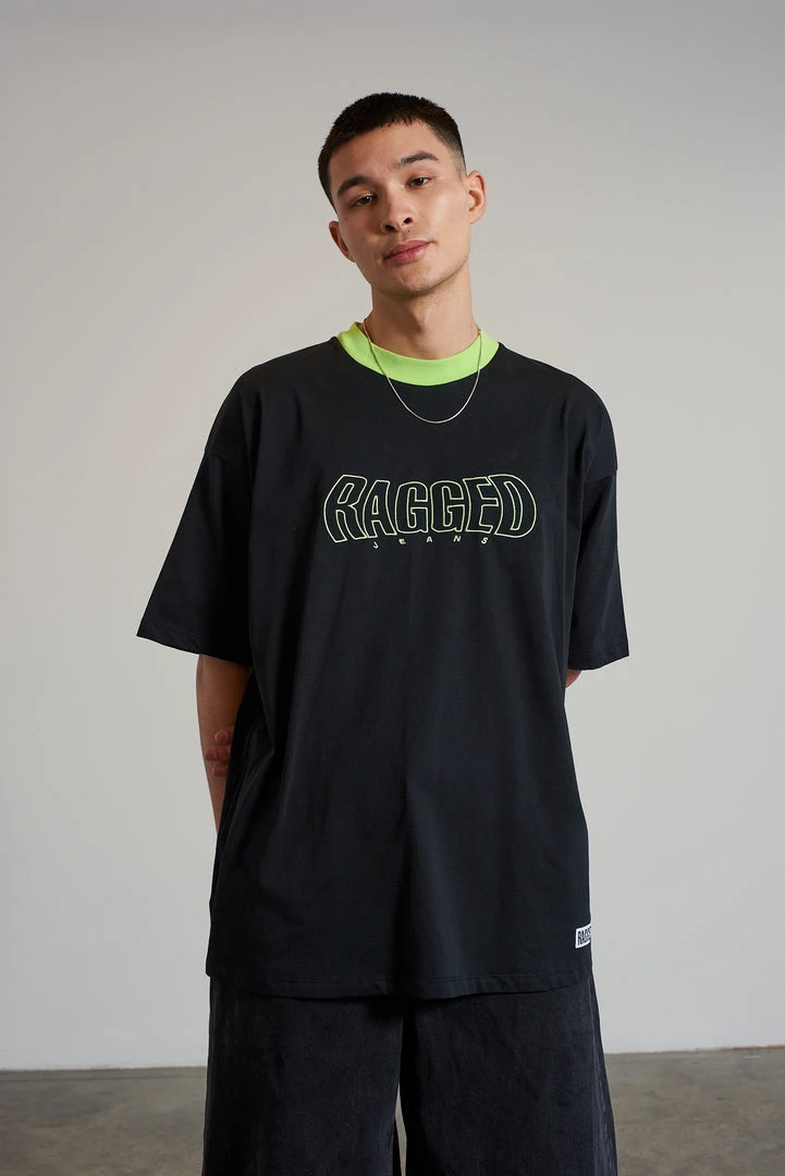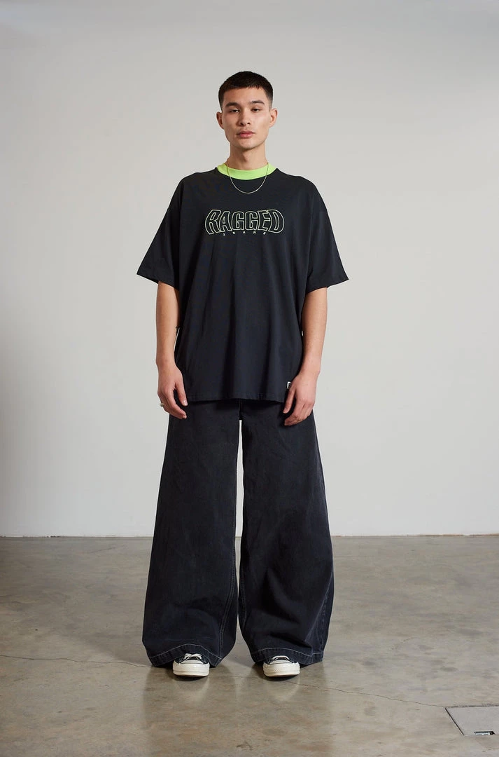 Ragged Jeans mens black oversized short sleeve tee with oversized Ragged logo.