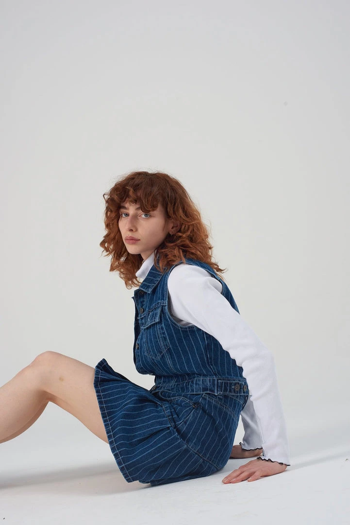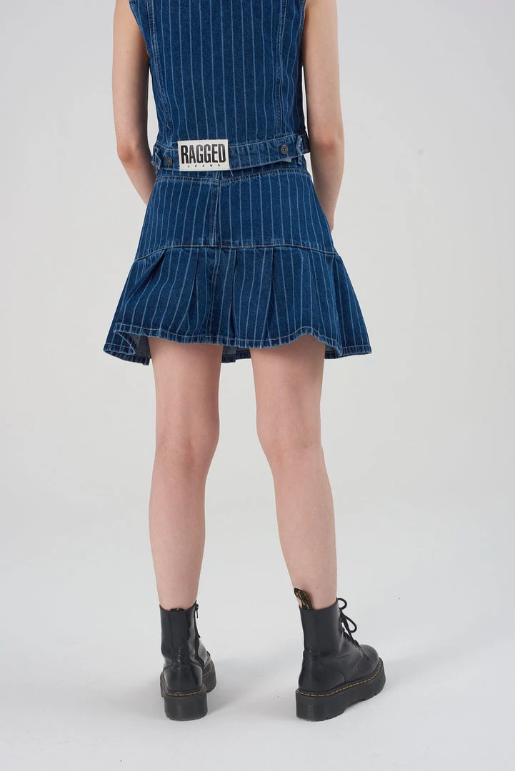 Ragged Jeans blue pinstripe pleated denim mini skirt.