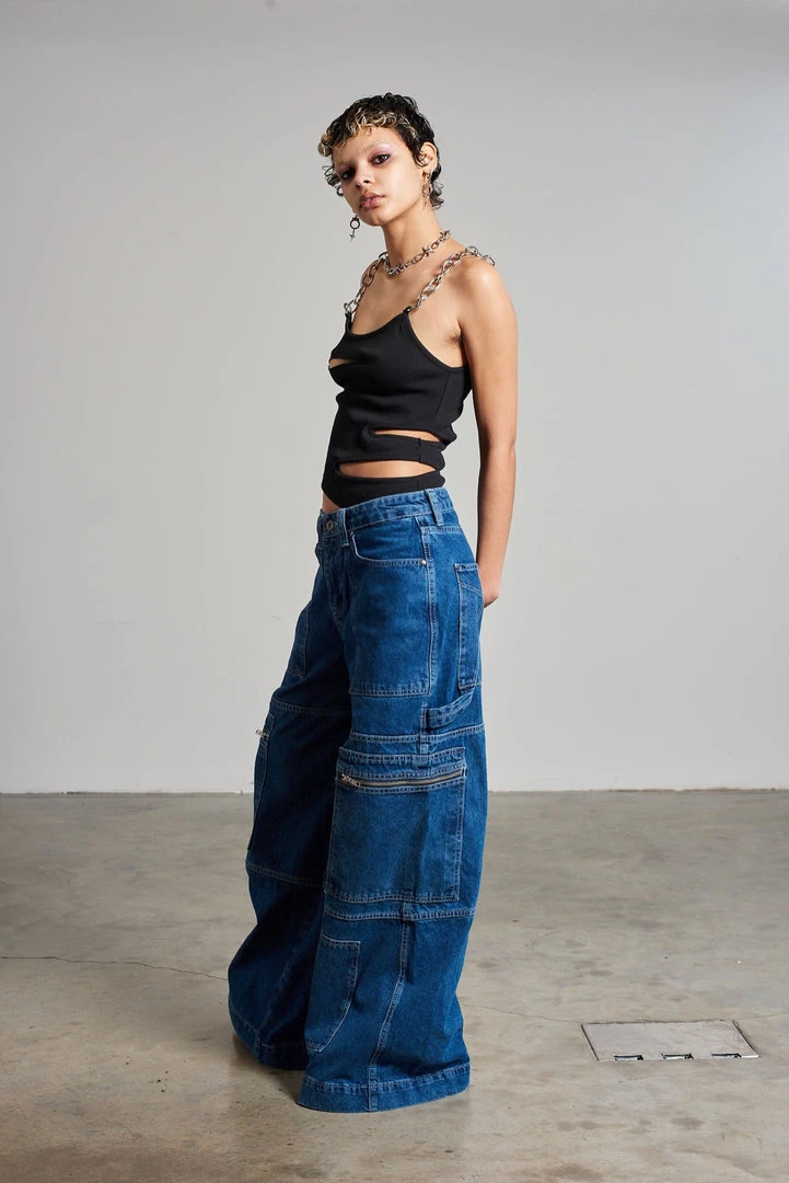 The Ragged Priest black ribbed cami top with cut outs and chain straps.