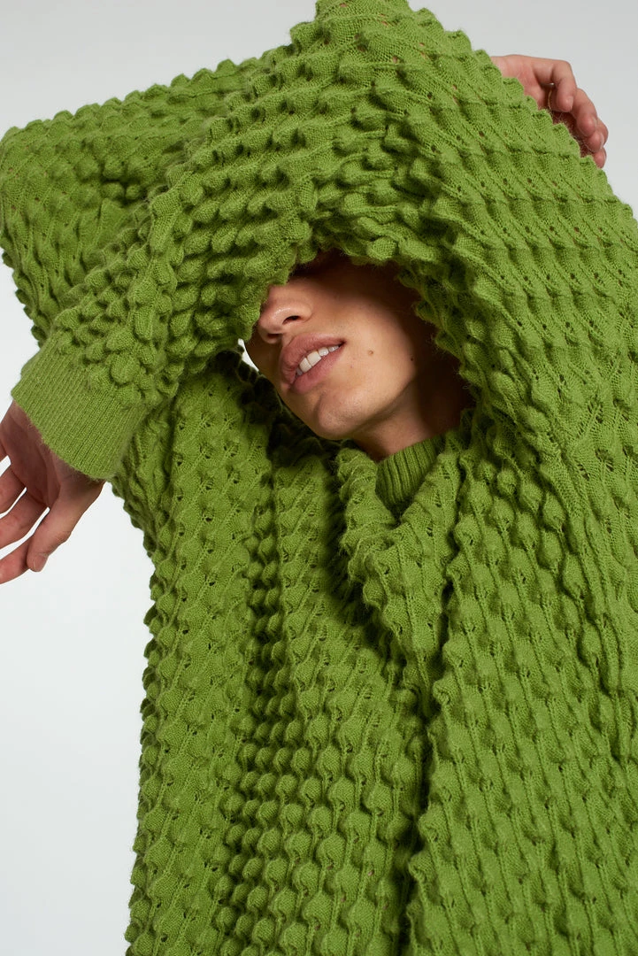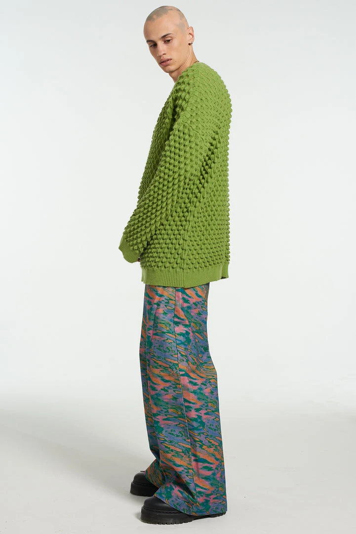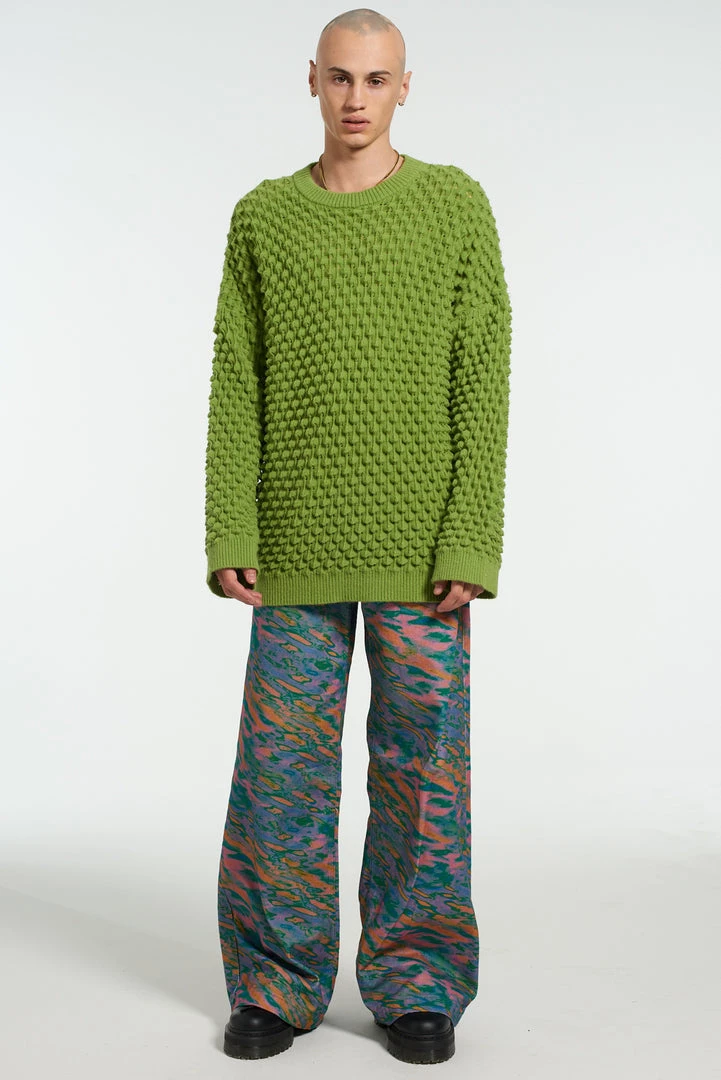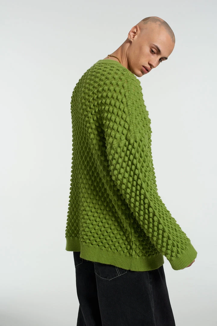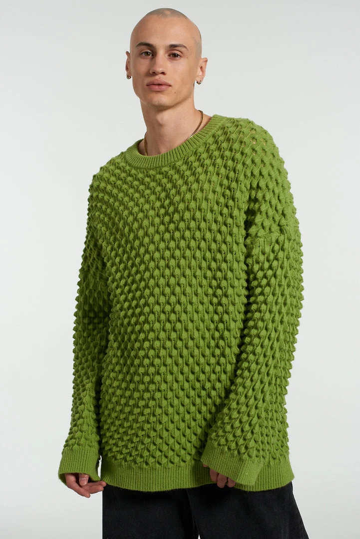 The Ragged Priest men’s green long sleeve knitted popcorn knit jumper.