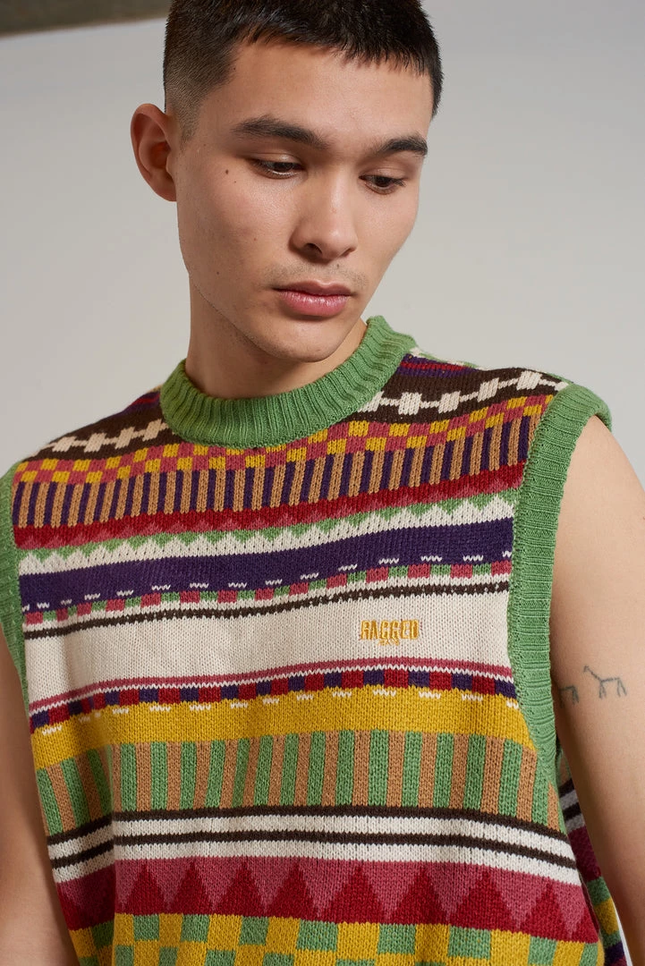 Ragged Jeans mens multicolour sweater shop print knit vest.