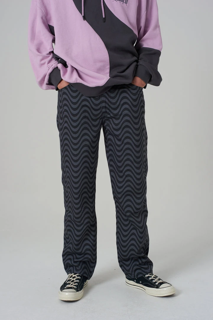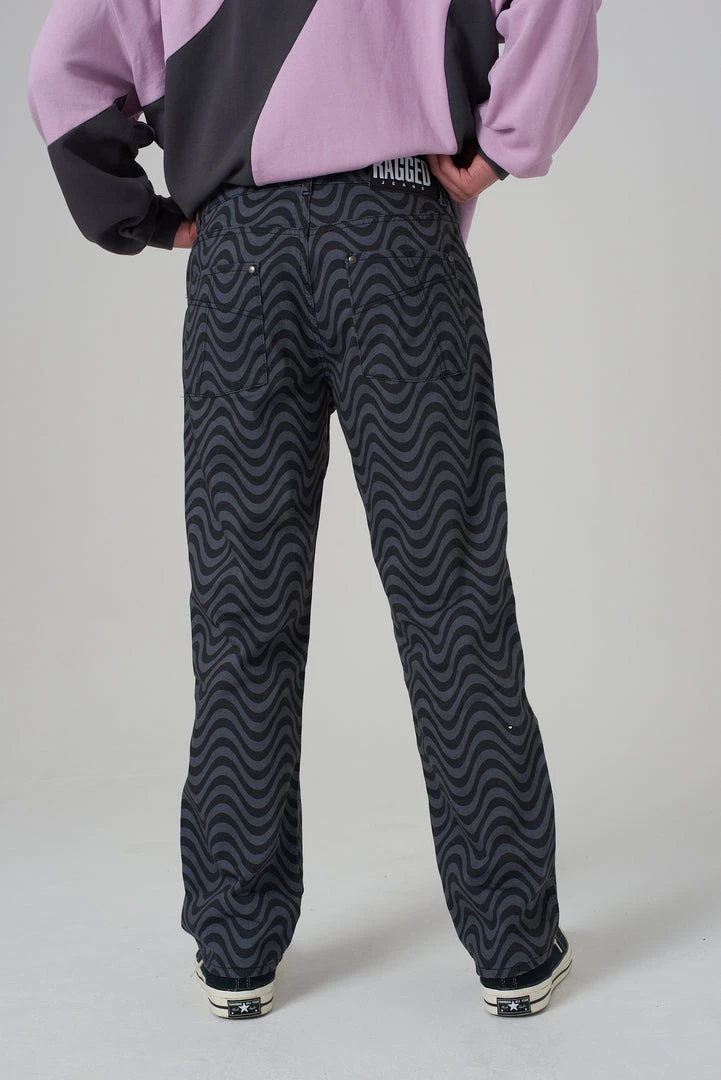 Ragged Jeans mens black & grey wave print denim straight leg jean.