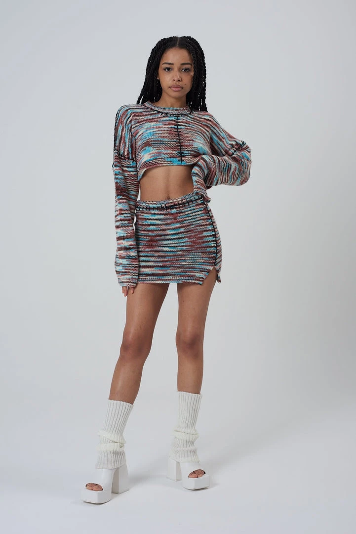 The Ragged Priest spacedye knitted mini skirt.