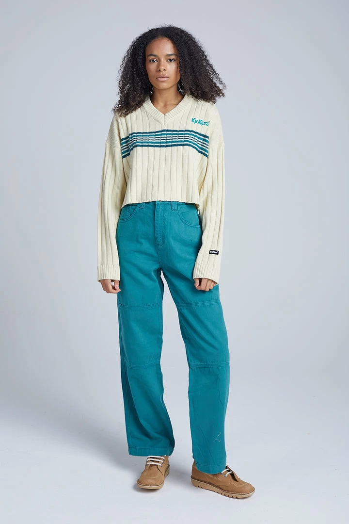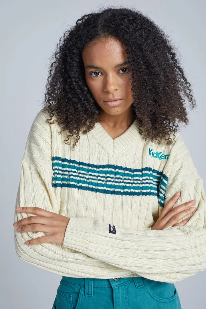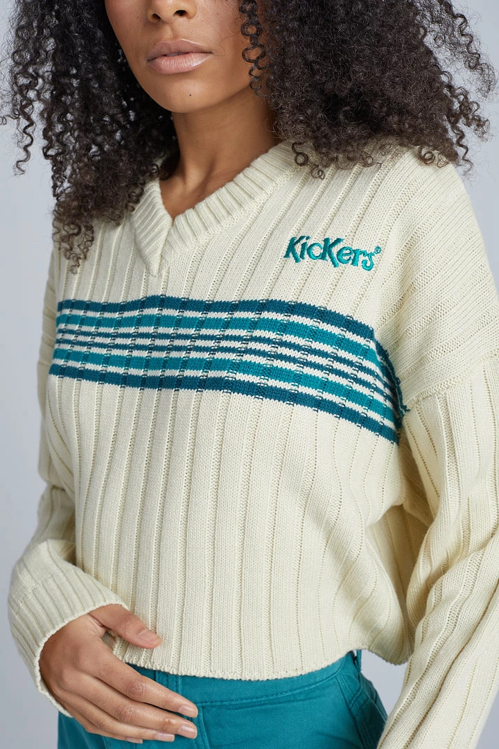 Kickers Classics beige ribbed knit jumper with chest stripe.