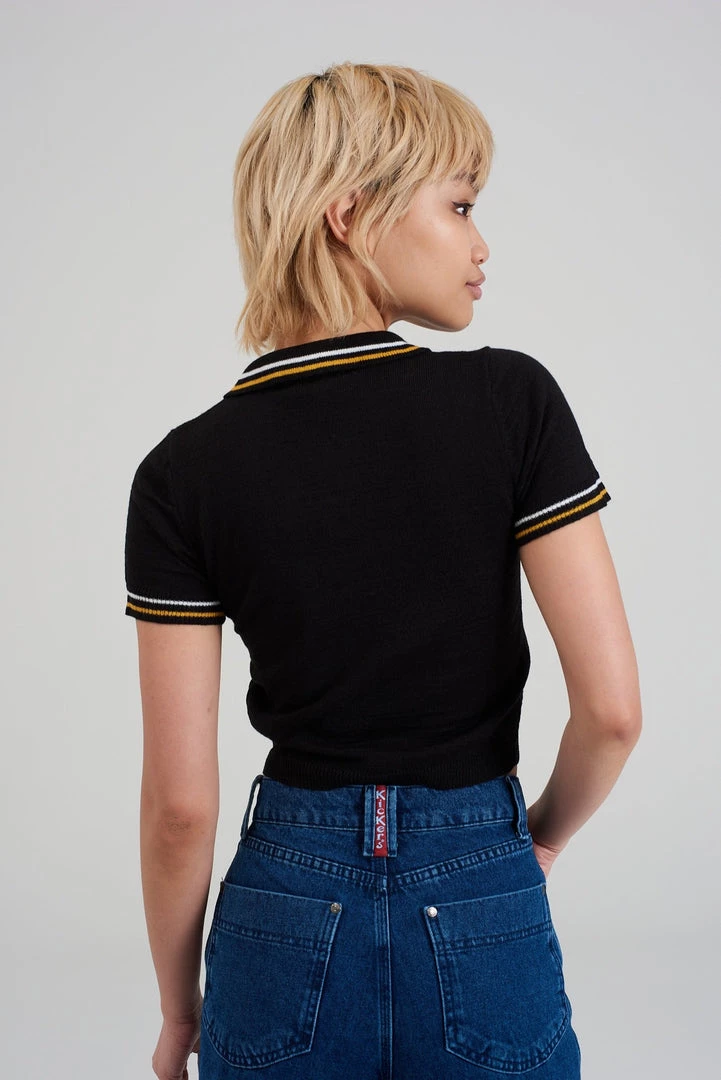 Kickers Classics black polo top with yellow chest stripe.